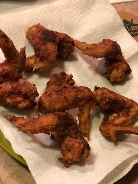 Once your chicken is done, remove and place on paper towels to cool and allow the excess oil to drain.