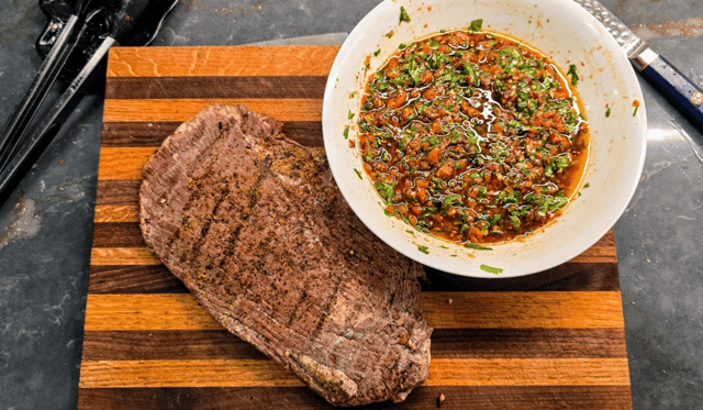 Green chimichurri (chimichurri verde) is bright, herby, and tangy, focusing on fresh parsley, oregano, and garlic, while red chimichurri (chimichurri rojo) is smoky, spicier, and slightly sweeter, swapping parsley for roasted red peppers and paprika, adding heat with chili/pepper flakes, and using red wine vinegar for a richer flavor. Both are uncooked Argentinian sauces used on grilled meats, but red offers a deeper, spicier profile with added smokiness, while green provides fresh, herbaceous brightness. The sauces are deeply rooted in the traditions of Argentine, Uruguayan, and Paraguayan cowboys (gauchos), who used it to add flavor to beef cooked over open fires. Many believe it is derived from the Basque word tximitxurri, which translates to "a mixture of several things in no particular order." These sauces are an excellent way to utilize herbs and spices and can last in the fridge for a week.