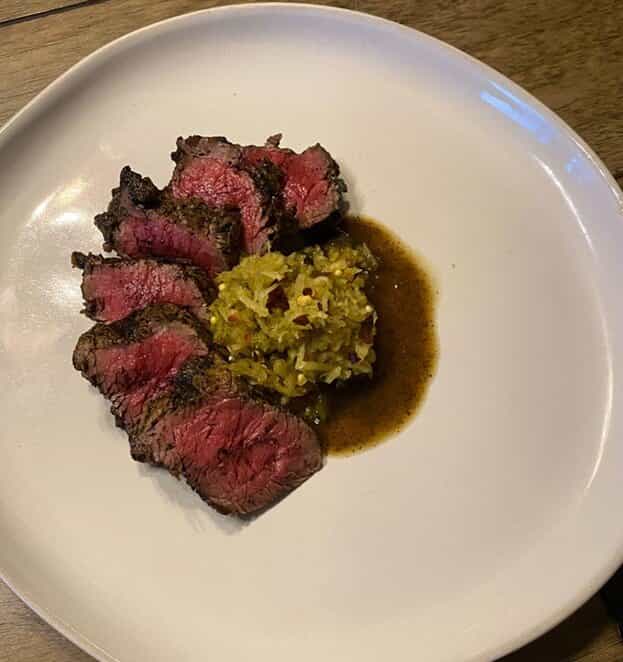I like using fennel ash for dusting meat before cooking, as it adds a subtle smokiness and depth of flavor. For this dish, I seasoned a tenderloin with salt, pepper, and fennel ash, then served it alongside a portion of the fennel stalk Piccalilli and a charred habanero sauce for a bold plate.