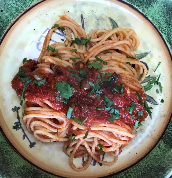 One of my favorite Italian dishes to make with fish sauce is a good old fashion Puttanesca. Conventionally, Puttanesca is an Italian sauce made with tomatoes, garlic, anchovies, red pepper and olives. It is a great pantry meal…. except for the fact that I can’t always find anchovies.
