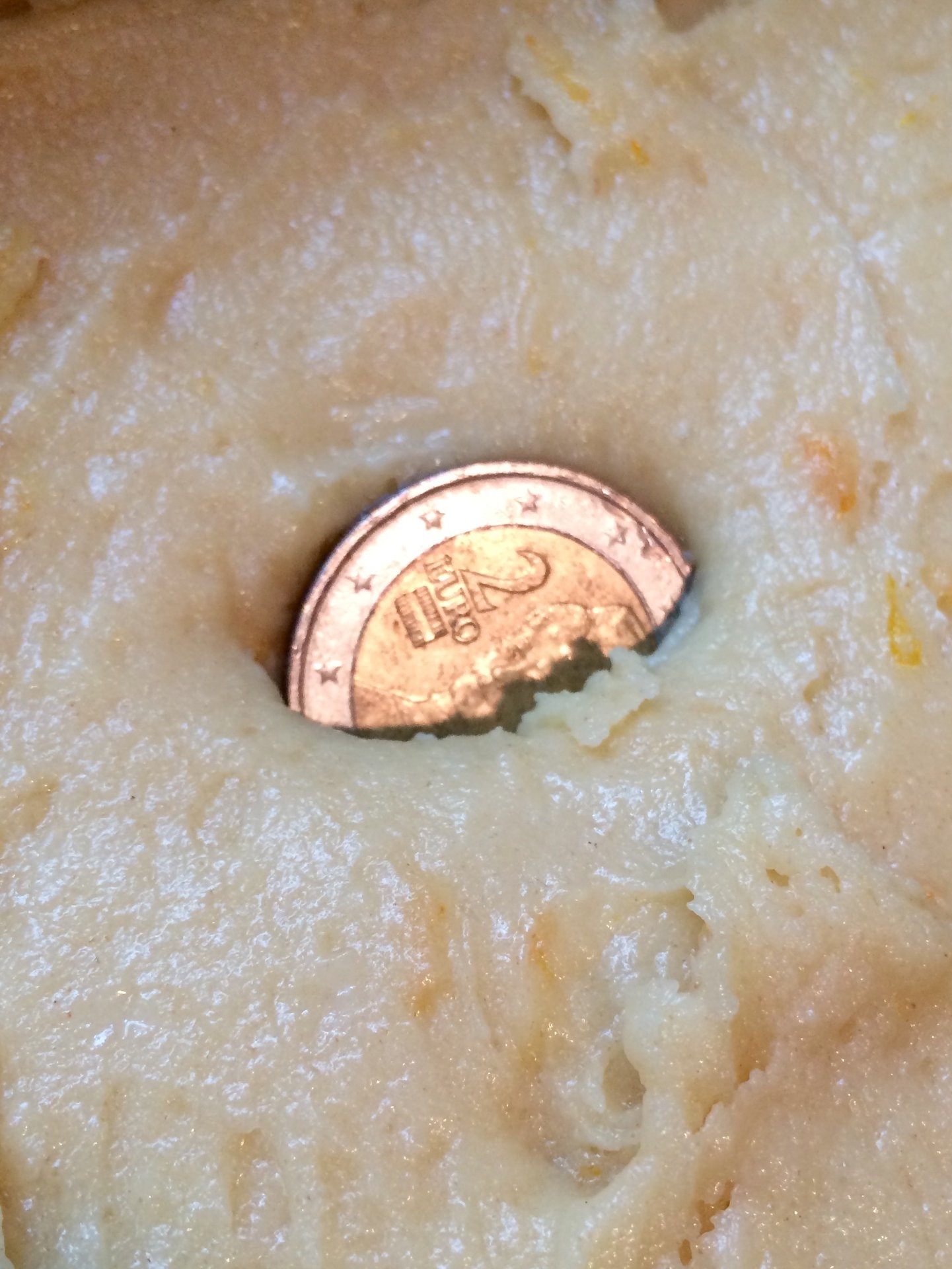 Transfer the batter to a buttered 10" springform pan (don't forget to add the coin!) and bake at 350 until light golden brown and a toothpick inserted in the center comes out clean (~ 40-45 min)