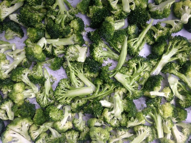 To get perfectly roasted broccoli, preheat your oven and your sheet tray to 425 degrees. Cut your broccoli into florets and massage in a high heat oil like grapeseed or canola. Season with salt, pepper and chili flake if you like a little heat. Transfer seasoned broccoli onto your hot sheet tray, you should hear a satisfying sizzling sound if you preheated your tray enough, cook until caramelized and tender. Every oven is a little different, so check your broccoli after 10-15 minutes, and you should be able to cut through the broccoli without much resistance.