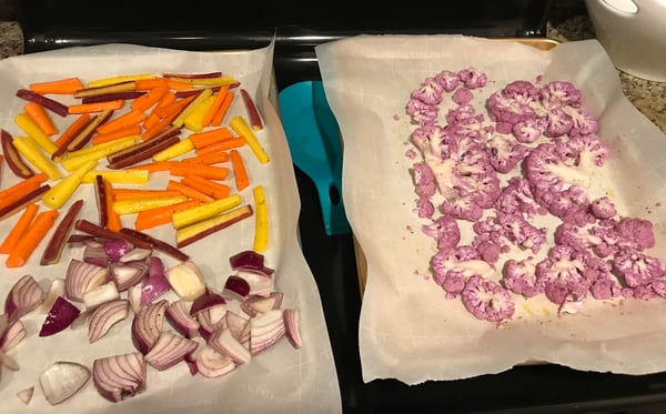 1. Roast the vegetables: If you aren’t certain about how to do this, here is a helpful guide. Start by preheating the oven to 400ºF.