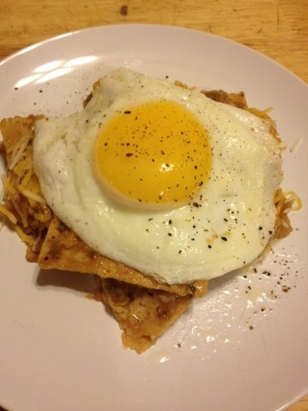 Whaddaya think? Super easy, no? I must mention that this quick breakfast is a pretty incredible hangover cure, too! Just add some cooked and crumbled Mexican chorizo to the chips and salsa and you’re well on your way to feeling better.