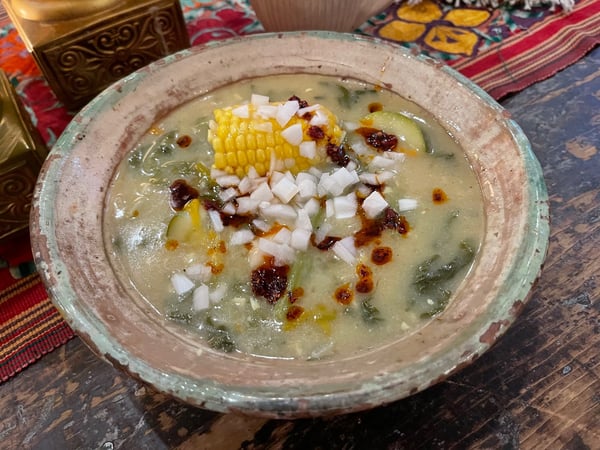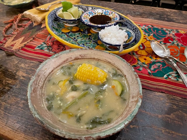 Sopa de Guias con Chochoynes: Oaxaca Squash Vine Soup & Masa Dumplings