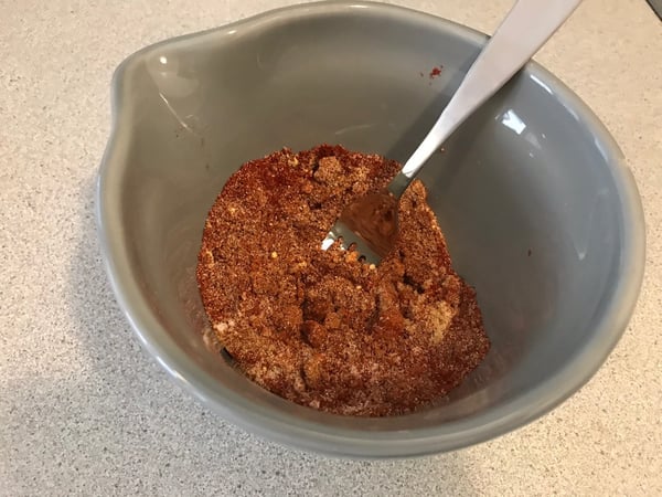 2. Set aside 2 Tablespoons of the rub (it will be used in the BBQ sauce).