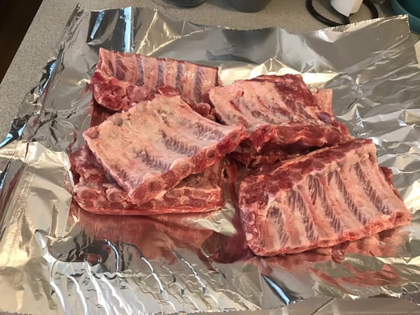 - Cut each slab of rib into 3 or 4 pieces and place them on aluminum foil.