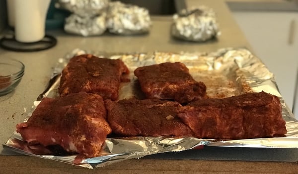 - 2 racks of pork spareribs, roughly 3-4 pounds each
