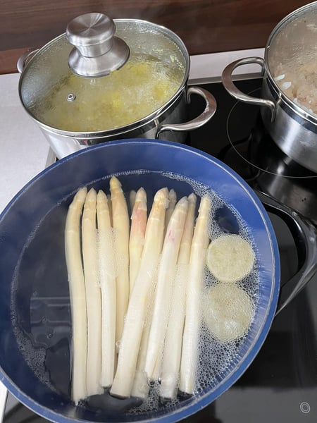 I recently returned from a vacation to Germany where I am originally from, and I had the amazing opportunity to spend time with my siblings for an entire month. Of course, we cooked a lot and since it's now in season in Germany, one of our go-to vegetables was white asparagus.