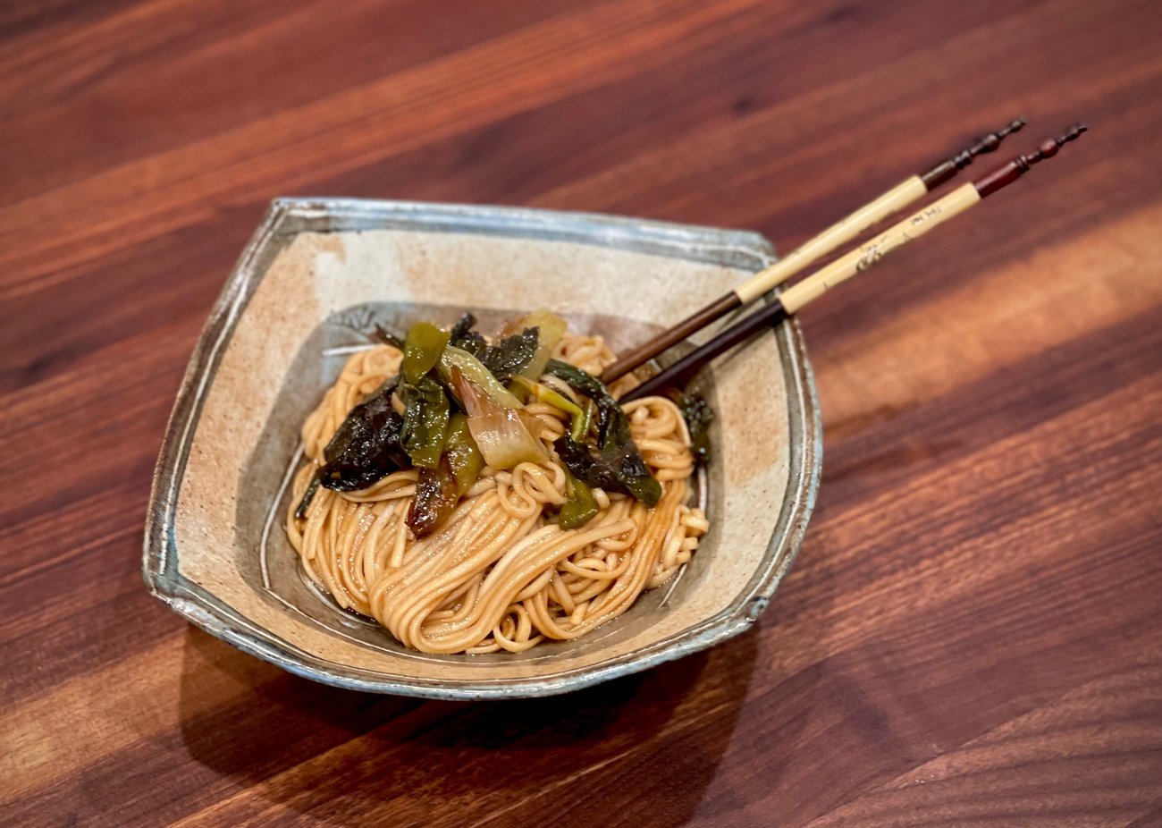 Both the onions and oil are delicious and can be used independently of each other. The spring onion oil can be used for general sautéing as well; cooking eggplant or mushrooms in spring onion oil adds a ton of flavor. The cooked onions can be added to eggs, vegetable or other noodle dishes… really anywhere you want a little tender and sweet onion addition.