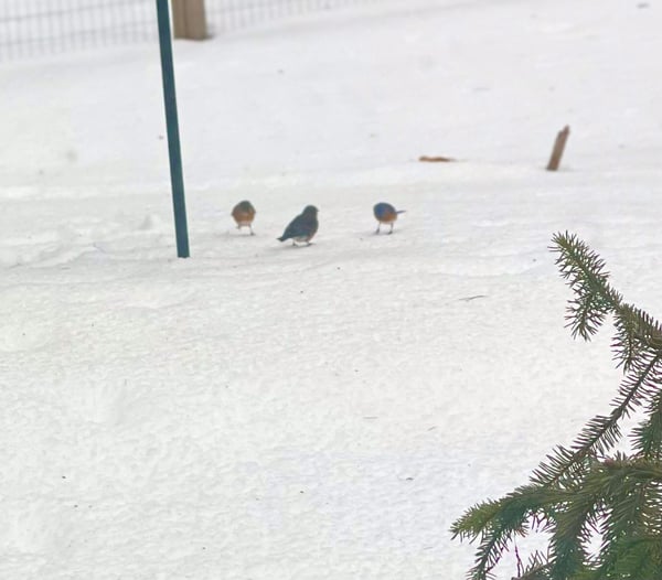 As I look out my window, it is hard to believe that spring is around the corner. There is about two feet of snow in my yard, and snow shoes are the ideal footwear for the trek from my home to office these days. While drinking my coffee this morning, my view was obstructed by the stalactite-size icicles hanging from the roof. But through that frosty view, I saw one of the first signs of spring: bluebirds. There were bluebirds eating at my bird feeders and flitting around their houses, scoping out the digs and confirming if this was a safe place to make their nests.