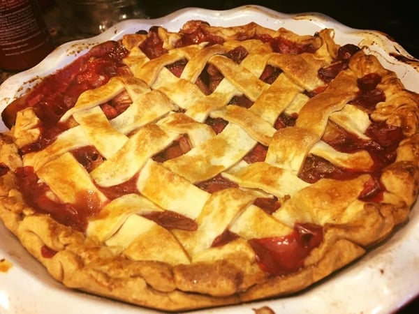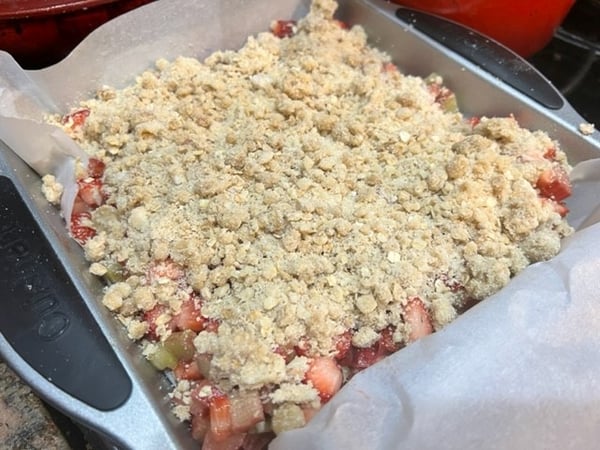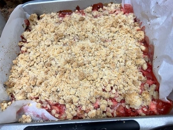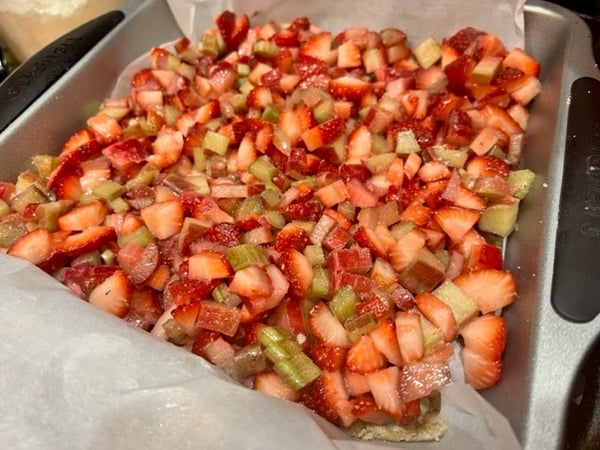 - Spoon the strawberry-rhubarb mixture over the crust to create an even layer.
