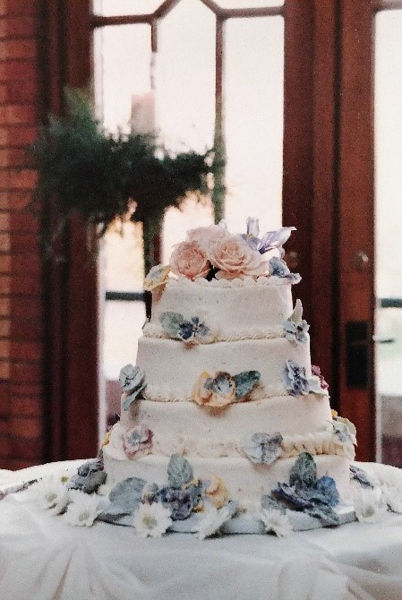 My wedding anniversary was a couple of weeks ago, and as my husband and I found ourselves looking through our wedding album we found a photo of our wedding cake. It made me smile, because I remember talking to the baker about how I wanted it decorated: fresh flowers on top and an abundance of edible sugared flowers scattered about. It was just the beginning of Spring here, and I thought all those flowers would joyfully celebrate that as well as the start of our marriage.