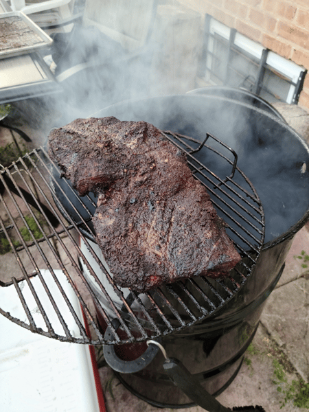 One of the biggest things I have learned since I began using my smoker is that air flow and controlling the vents are key to maintaining the temperature of the smoker. I also want to point out that large cuts of meat like to stall out (aka not rise above temp) at certain times and not to fret. At this point in the cooking process, I like to wrap my brisket in uncoated butchers’ paper which help keep the bark from getting soggy. The bark we all know and love is the crispy outside of barbequed meats that contains that epic smoke ring. That's opposed to wrapping it in foil, which creates a steamer effect that could make the outside softer yet help achieve the proper temperature. There are numerous different debates on this fact, and I have done both methods depending on what I am cooking.