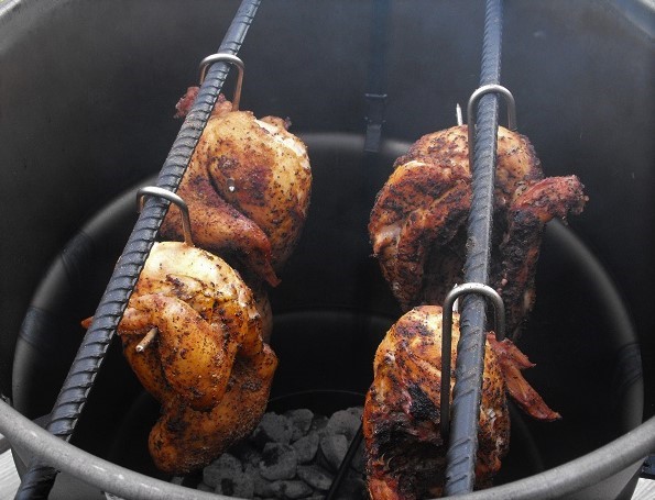 In addition to cooling the bottom of the meat, the dripping juices fall onto the hot coals, producing a smoke fog which fills the barrel and envelops the meat, infusing it with even more natural flavor. Of course, this is not to say that grilling on the grate won’t yield equally impressive results. Similarly, to hanging the meat, the greater distance between the heat source and the grate serves to reduce “hot spots” and cooks the meat more evenly on the bottom and the top.