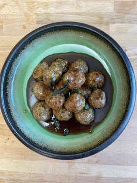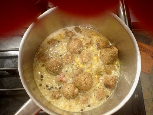 Note: The original version of this recipe from that Polish grandmother includes instruction for making the meatballs from scratch. I often opt for the frozen version to save time, but here is the original if you would like to make them yourself: