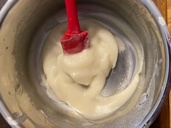 Gradually add the hot milk mixture to the dry ingredients until a slightly lumpy batter is formed. Once mixed, add Tangzhong and mix until homogenous.