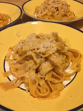 I will not be mentioning my fake pasta trials when I travel to Italy for The Chopping Block's Cook Like a Tuscan tours this fall as I know the Italians would call that blasphemous. I look forward to enjoying delicious fresh pasta made with flours and eggs every single day I'm there! The tours are sold out, but everyone should learn how to make pasta from scratch in their lifetime, and we can help you do just that with our Pasta and Gnocchi Workshop. In this hands-on class featuring a current Spring ingredient forward menu, you'll make and enjoy:
