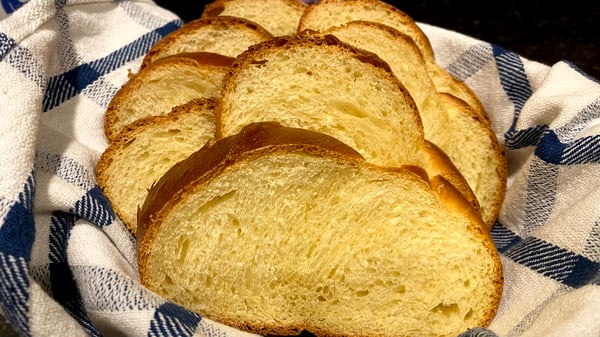 Slide your proofed and egg washed loaves into the preheated oven, and bake, rotating the pans as necessary, until golden brown. This final opportunity for your loaf of bread to rise up before the crust is formed is called oven spring. How do you know when your bread is done? Follow the allotted bake time in your recipe. Otherwise, you can go based on look and feel. The crust on the challah should be a medium-dark brown, and when you lift up the loaf and tap the bottom, it should sound like a hollow thud. I know it’s tempting to cut right into your freshly baked loaf of bread, but be sure to let it cool for about 30 minutes.