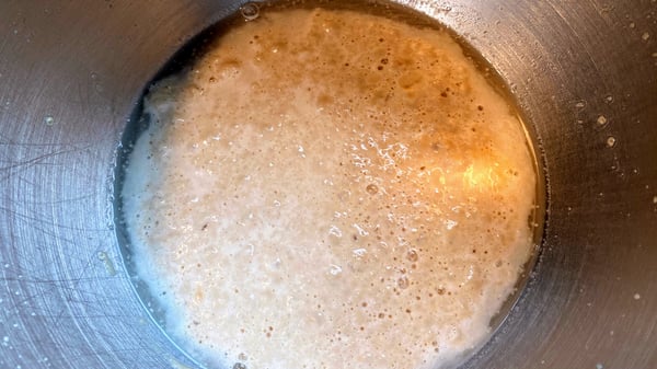 - In the bowl of a stand mixer, fitted with the dough hook, or in a large mixing bowl, measure together the yeast, warm water and a pinch of the sugar. Allow this mixture to bloom for about 5 minutes, or until you see bubbles form on the surface of the water.
