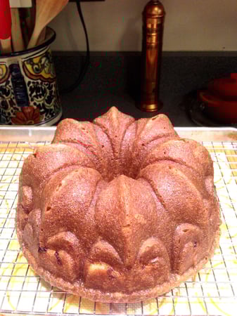 I recently experimented with Bundt cakes made with peaches. I came up with a cake with a peach soaking liquid made from pureed peaches, sugar, orange juice and peach brandy. While the cake was still warm, I poked several small holes in the cake using a bamboo skewer and poured the soaking liquid into the cake. After sitting for a couple of hours in the peach soaking liquid, the cake was not only a work of art, but also a delicious masterpiece. Let me know in the comments if you want me to send you the recipe.