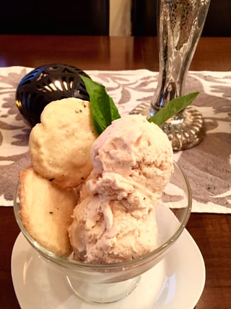 Remove the basil leaves from the refrigerated peaches. Put half of the peaches in a blender with all of the basil-infused syrup and blend to a puree consistency. Transfer the pureed peach mixture back into the bowl with the crushed peaches and add a cup of heavy cream and 2 tablespoons of vodka. The vodka not only adds a hint of flavor, but it also helps create a very smooth consistency in the sherbet. Cover and place the sherbet mixture in the refrigerator once again for at least an hour before using an electric ice-cream maker to finish it off. Churn it based on the instructions for your particular ice cream maker. Once it has churned, if it’s a consistency that you prefer, serve right away. I placed mine in a container with a tight lid that can withstand very cold temperatures and placed in it in the freezer. After much waiting and anticipation, I scooped it out to serve the next day. It was perfect, and was even better served with a couple of lemon-thyme ice-box cookies.