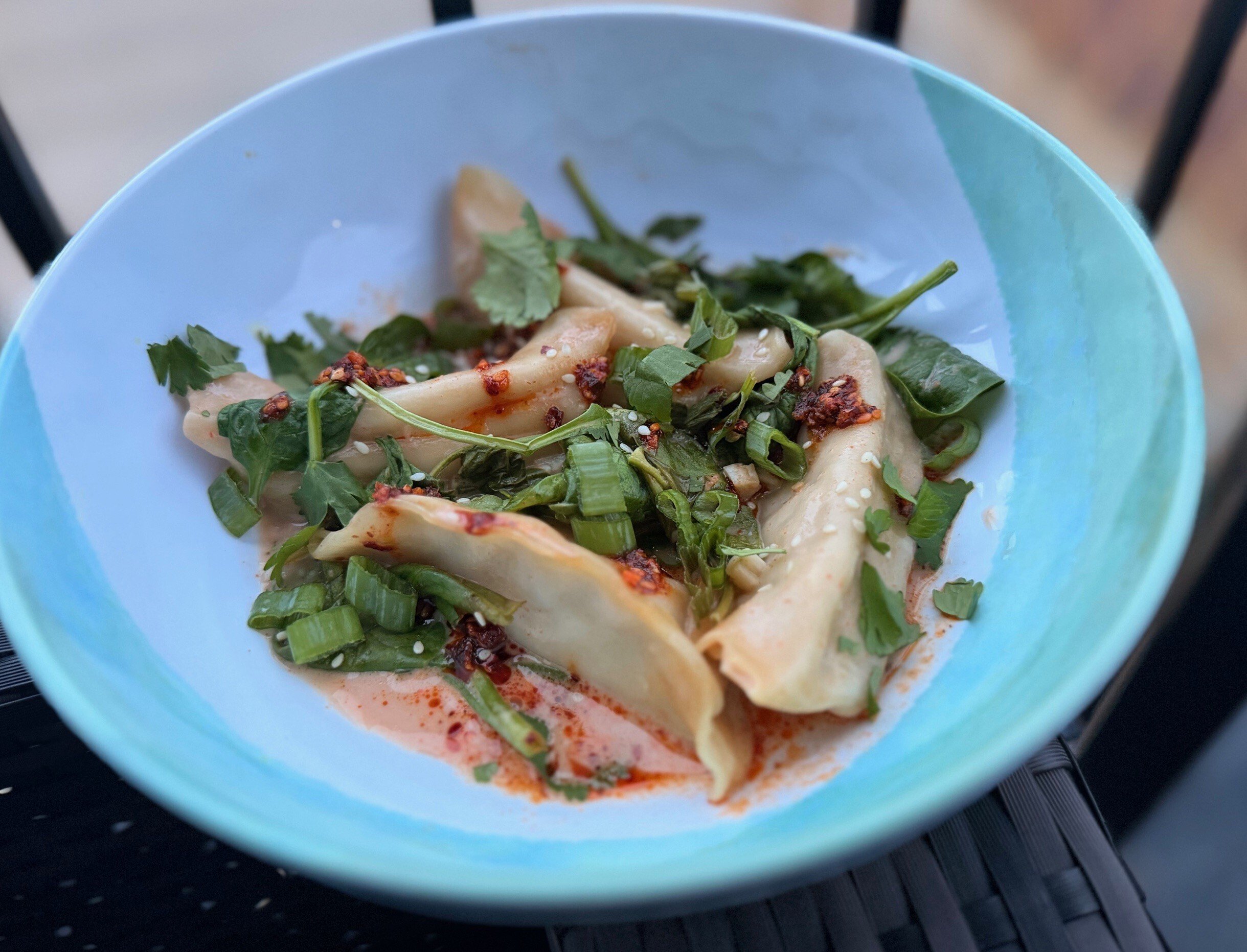 7. When ready to serve, garnish with cilantro, scallions, chili crisp and sesame seeds. You can garnish the entire dish, or let everyone garnish their own!