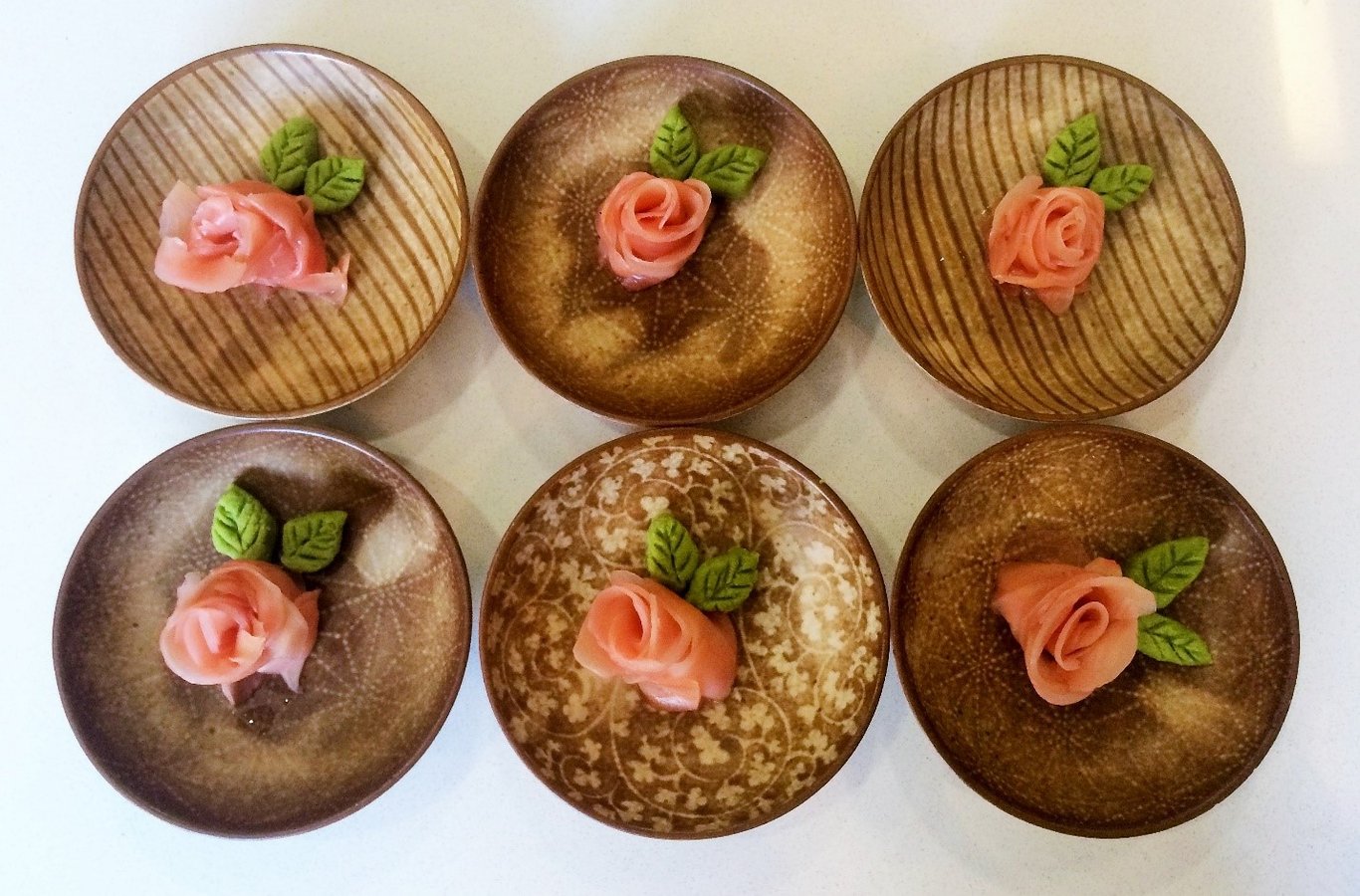 Sushi. There is a lot to be said about sushi. There are also a lot of key components that go into high quality sushi – things like properly seasoned rice and the freshest of fish. Unmistakably, nice presentation is also key to any good sushi plate. The saying goes, “You eat with your eyes first”, so I have a couple tips for amping up your sushi presentation game, particularly with the accompaniments. This is more like a craft project than a recipe – sushi is an art, after all, and is also something that I like to refer to as a “project-based food”.