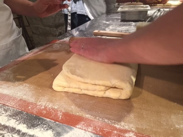 I knew croissants were buttery in nature, but I had no concept of exactly how much butter goes in them. It's a lot. We literally had to pound out pounds of butter to be folded into the dough to start the lamination process. I was really happy I ate all those croissants before I found all this out!