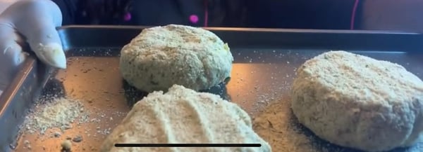 - Place enough breadcrumbs onto a shallow plate that will coat patties evenly. Take the mixture out of the freezer.