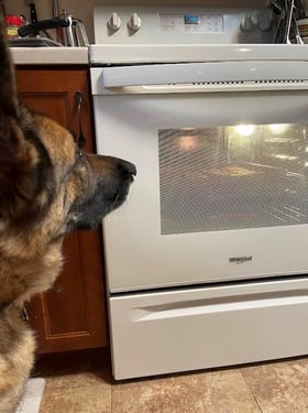 I make this treat in batches, and freeze in ½ cup containers to store in the freezer. We give it to Hemingway in lieu of dinner once a week. The pumpkin and Greek yogurt are great for his tummy, and I often sprinkle some doggie probiotic on top just to add to the health benefits. I know some dogs don’t tolerate dairy well, so this recipe may not work for your dog, but if so, I highly recommend giving it a try.