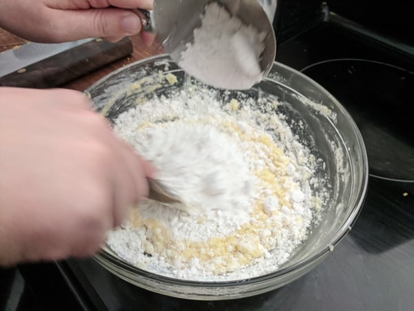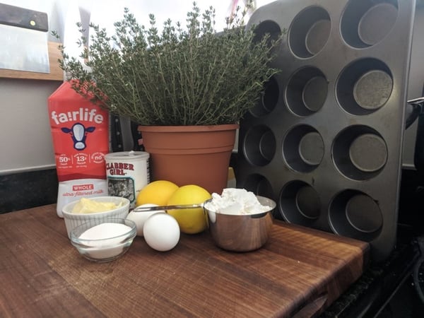 While we talked over the recipe and made sure we had everything we needed, I felt it was a bit basic. If this was our attempt at escaping the hum drum, I felt that we needed a few tweaks and some jazz on this recipe. We settled on trading out the AP flour with cake flour, upping the lemon zest by 50% and throwing in some fresh thyme. One nice aspect of Meyer lemons is that they have a unique menthol background flavor that lends well to herbs, and it is a little sweeter which balances savory connection many people have with fresh herbs as well.