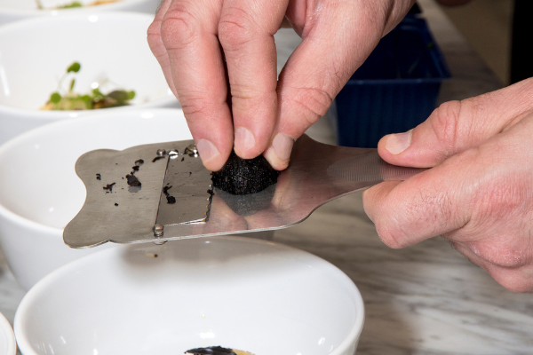 Truffles have a specific seasonality between black and white and when the season is not upon us many culinarians will refer to salts, oils or butters. At TCB, we particularly use salts as many of the oils tend to not be authentic. Many of the truffle oils found have ingredients like 2,4-dithiapentane, an aromatic molecule that gives truffles their distinctive smell. In order to identify whether your truffle oil is real you should smell your oil and see if your initial smell is truffle or olive oil. If the initial smell is not the strong aroma of truffles, chances are you have a synthetic product.