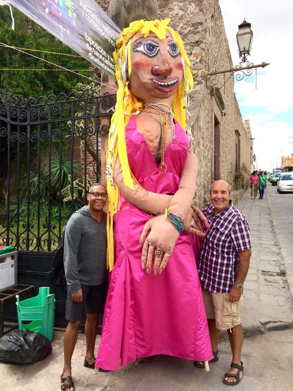 Another one of my favorite things to experience while strolling through the Jardin is the Mojigangas, or giant puppets. You'll see Mojigangas made to resemble the bride and groom in wedding processions now that San Miguel has become the wedding capital of Mexico.