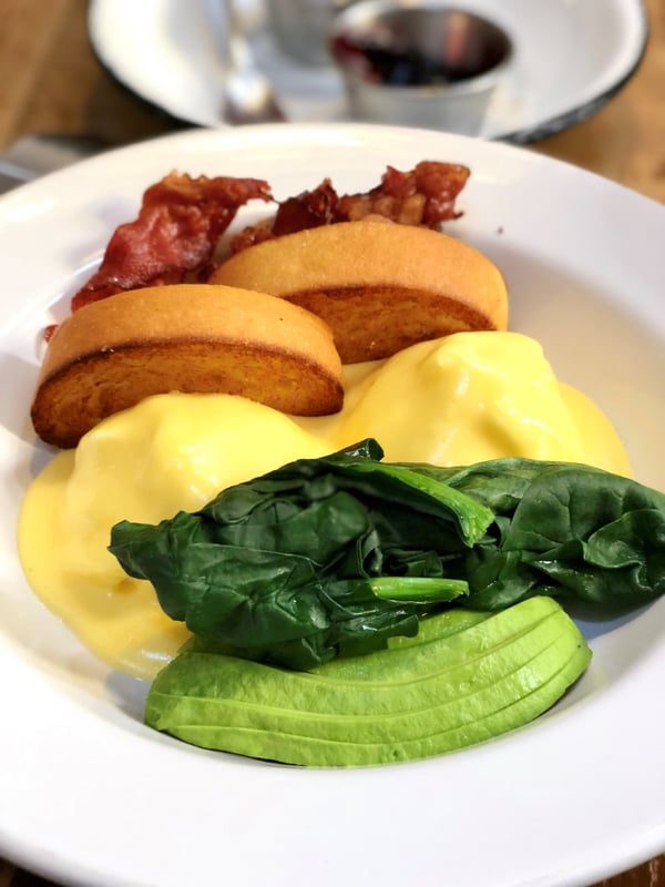 Of course, I can't not mention Lavanda Café. I’m a sucker for a great Eggs Benedict and I think that Lavanda offers one of the best: perfectly poached eggs topped with a silky, rich hollandaise sauces, along with toasted brioche, two very thinly sliced crispy strips of bacon and with a side of either steamed spinach or blanched asparagus.