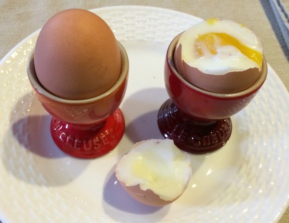 So I did a little research, because like most Americans, I don’t eat soft-boiled eggs very often. Mostly I don’t eat them because I generally end up with hard-boiled instead of the lovely soft-boiled egg.