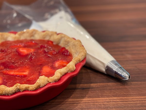 Combine the filling and fresh strawberries and fill the cooled pie shell. Refrigerate until filling is completely chilled, approximately 4 hours.