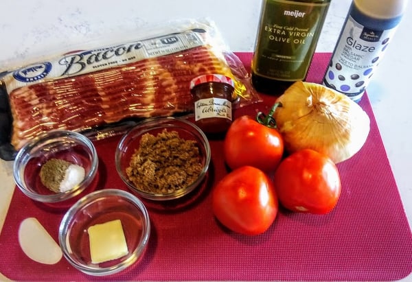 - 1 lb. bacon, chopped (this may seem like a lot, but I usually nibble on the cooked bacon so probably only ¾ of this actually makes the entire journey to jam)