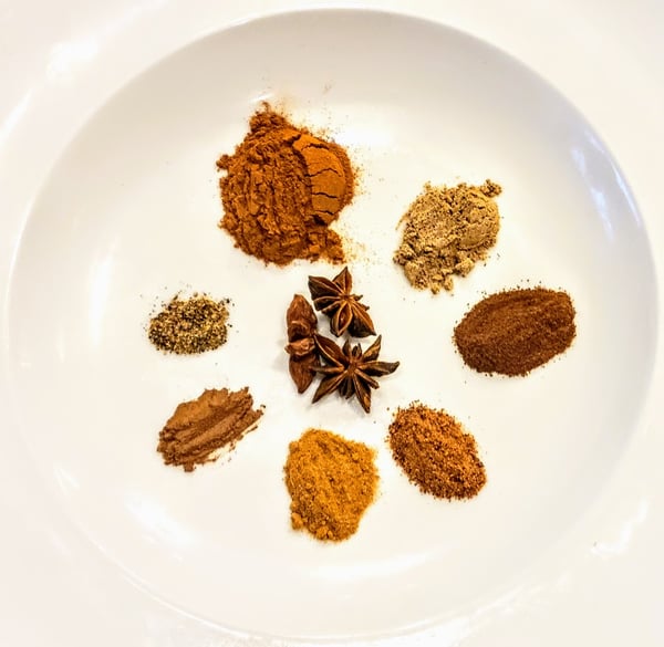 I find myself turning to Chai spices to warm me up on cool fall days. Chai spice is similar to pumpkin spice, but the addition of cardamom really makes it stand out in my book. I add star anise to my chai spice mix to create an even more complex flavor profile. When making my spice mixes, I tend to favor whole spices which I can toast and grind myself. I find they have a more robust flavor but ground spices will do for most recipes. I love having this mixture of spices on hand for tea, baking, roasted vegetables and anywhere else you use sweet warming spices. My mix below consists of cinnamon, ginger, clove, nutmeg, allspice, cardamom, star anise and black pepper. The amounts are preferential, but I generally start with 1 part cinnamon, 1/4 part black pepper and the rest is half a part.