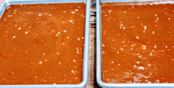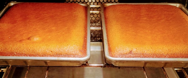 Makes 2 9” pans, 2 ¼ sheet trays, 24 cupcakes