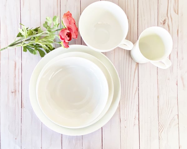 With porcelain and fine bone china, the materials are much harder. Don’t worry the porcelain and fine bone china of today are not your Grandma’s flowery plates brought out once a year at holiday time. Today’s porcelain and china come in sleek, contemporary designs to fit many budgets and styles. My plates pictured here are from Bed Bath and Beyond and are part of a large collection of varying shapes and sizes. I have had many of these pieces for years and use them every single day. They were a little more of an investment on the front end, but have yet to chip, crack or break.
