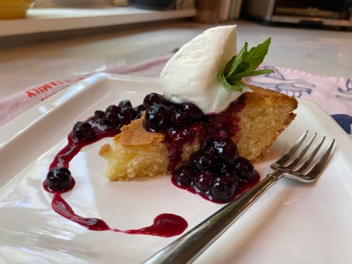I spooned the fluffy lemon mousse into cups, topped it with fresh blueberries (other berries work well, too), added a Nilla Wafer for good measure and dusted the tops with powdered sugar. I brought a bowl of extra Nilla Wafers to the table, because everyone seemed to really like scooping the mousse up with the cookies, especially my kids!