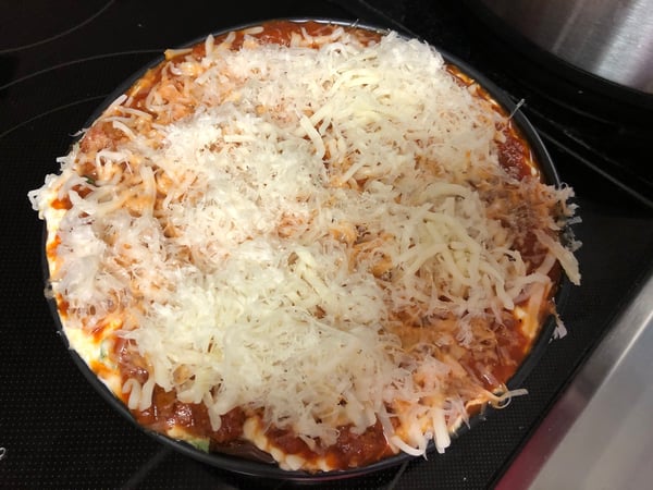 The CrispLid worked well as an air fryer, but what about using it in conjunction with the Instant Pot? This to me, seemed to be another big perk of this tool so to test, I made a lasagna in my 7-inch springform pan (which is a must for any Instant Pot user) and crisped up the top layer of cheese with the CrispLid. Here's the recipe from Mealthy's recipe book (it's also online) which will give you slightly more meat sauce and cheese sauce than you need. But overall, it's a solid recipe.