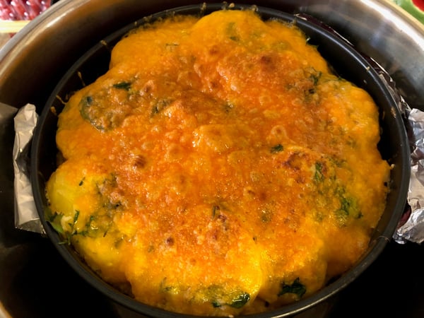 Once the potatoes were cooked through, I added another layer of cheese to the top and put on the CrispLid to crisp up the top layer of cheese for a few minutes.