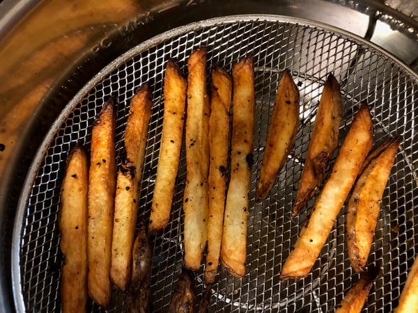 I started with some basic items I had cooked in my old air fryer a bunch of times so that I could compare the results: a piece of breaded cod, Brussels sprouts and French fries. The process is the same as with any air fryer: you spray the food with oil on both sides, air fry, then flip and respray halfway through the cooking process. All of the food came out crispy and delicious with about the same cook time as the old air fryer. In fact, the French fries are the best I've ever had in an air fryer. You couldn't tell they weren't deep fried!