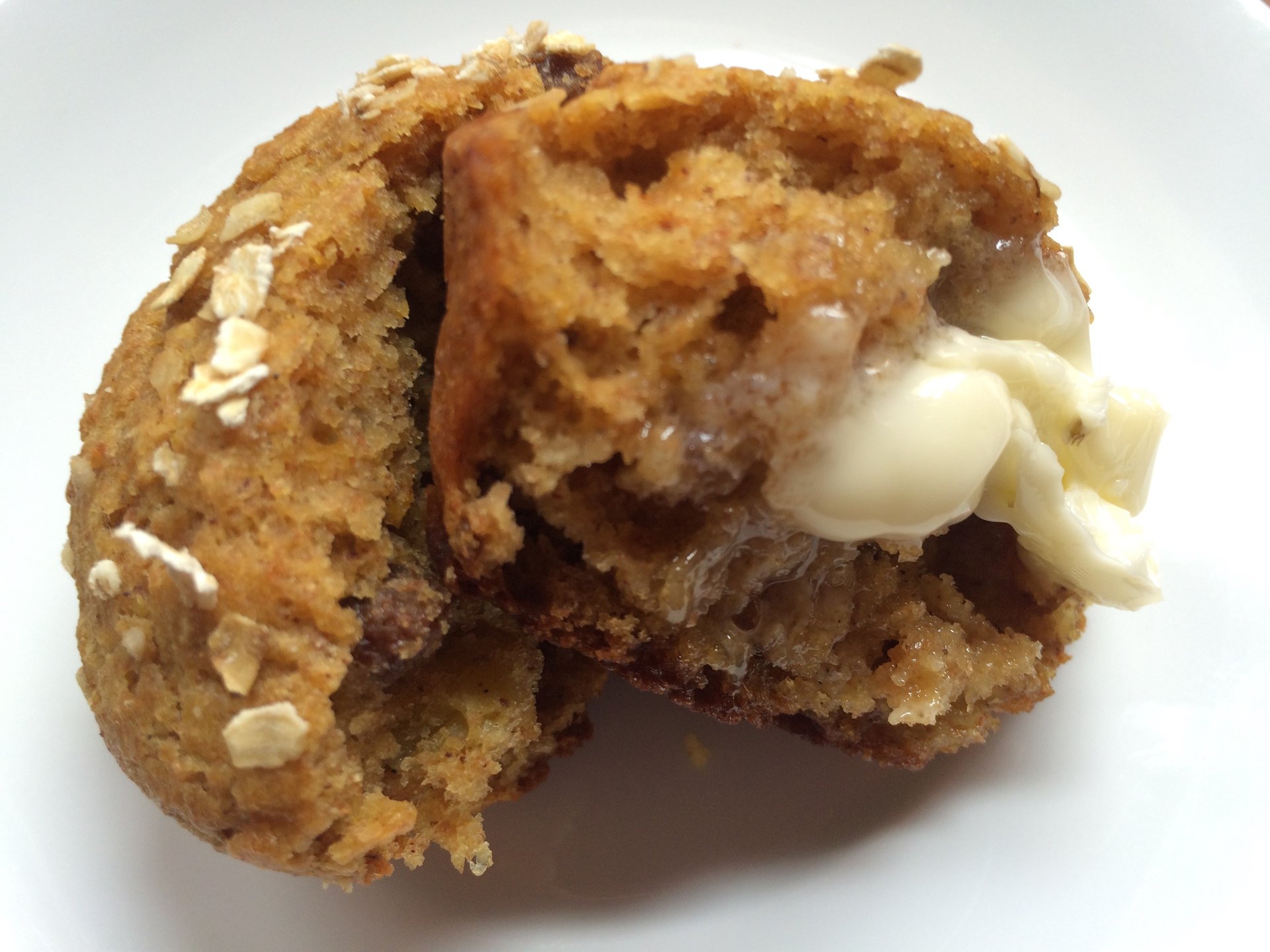 Taking all of these things into consideration, I came up with what I thought was the perfect idea - a muffin! Not just any muffin, though, a delicious muffin packed with veggies, whole grain, protein with just enough sugar and buttery goodness to make the medicine go down. This mostly virtuous but mildly decadent combination of roasted butternut squash, whole wheat flour, Greek yogurt, walnuts, and raisins is one of my all time favorites.