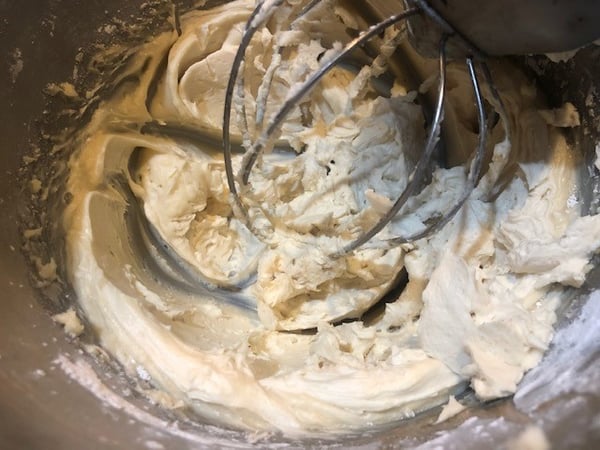 - Add vanilla bean paste, salt, and confectioners sugar and whip to combine (it will be very thick!)