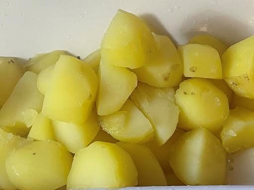 - 3 pounds Yukon gold potatoes, peeled or scrubbed, cut in half 1 tablespoon kosher salt