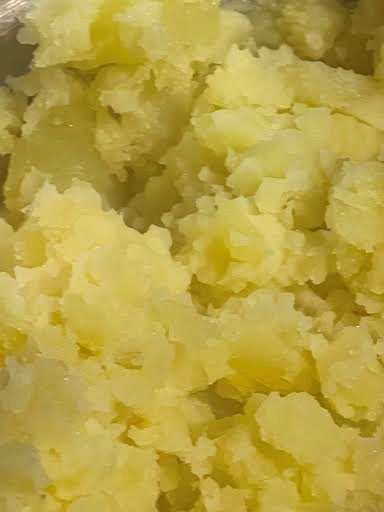 This was after adding about 1/2 cup of milk. I like a rustic mashed potato so I don’t whip mine much more than this.