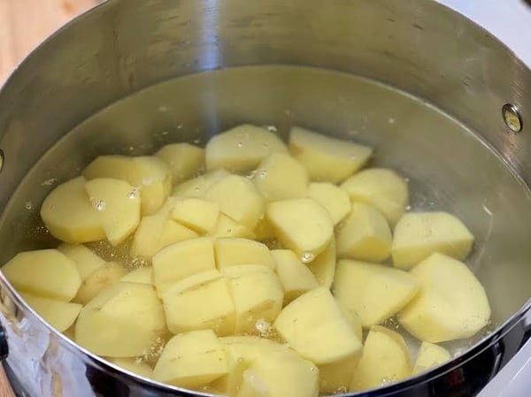 - Place the potatoes in a large pot with 1 tablespoon sea salt. Cover with cold water and bring to a boil. Reduce heat and simmer until potatoes are tender when pierced with a knife.